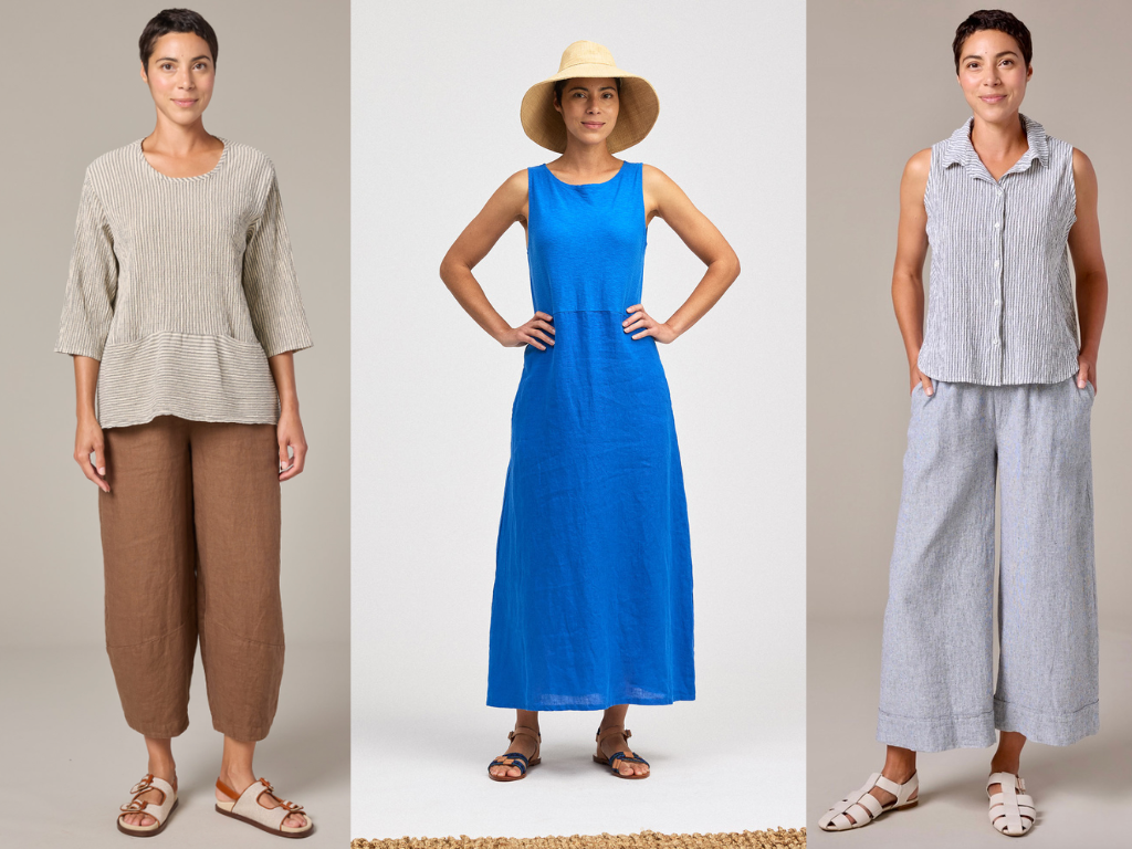 Our dress collection is here—perfect for transitioning into cooler days while keeping your look polished and comfortable. Crafted in linens, cottons, and soft rayons, these dresses are easy to wear on their own or layered with toppers, cardigans, and jackets as the season changes. From classic silhouettes to artful, statement-making styles, you’ll find versatile pieces that move effortlessly from warm afternoons to crisp autumn evenings.