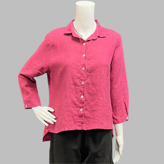 Hi-Low Crop Shirt in Linen by Cut-Loose