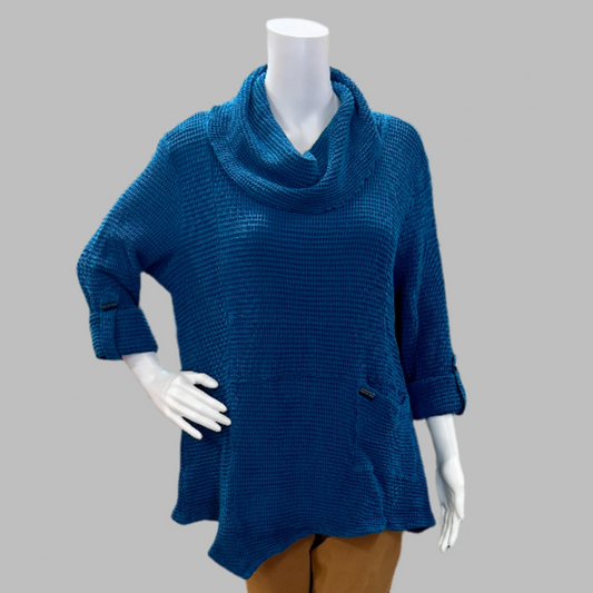 Asymmetric Cowl Neck Tunic in Cotton Waffle Weave by Focus