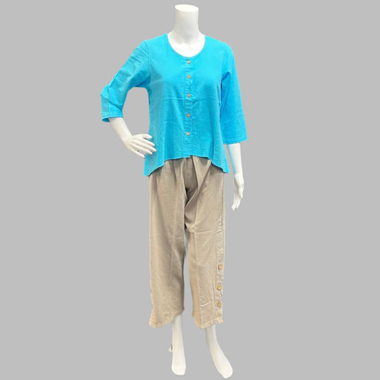 Cotton Seersucker 3/4 Sleeve Tunic by Focus Fashions
