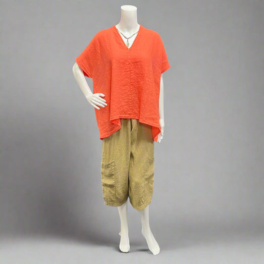 V-Neck Tunic with Button Sleeve in Light Weight Crinkle by Sea Breeze of California