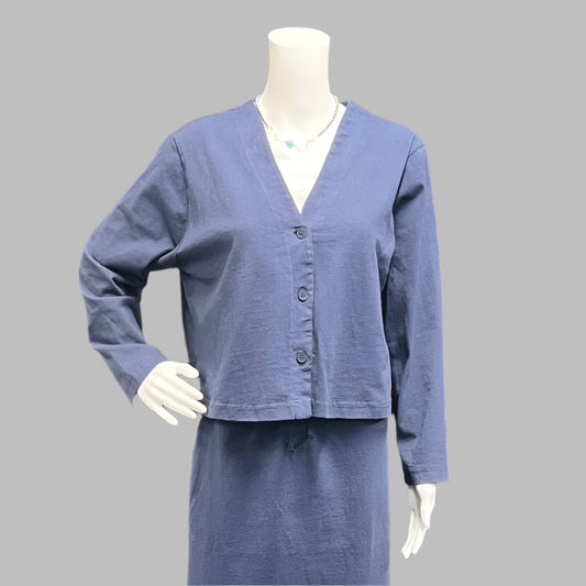 Crop V-Neck Cardigan in Cotton Jersey by Pacificotton - CLOSEOUT