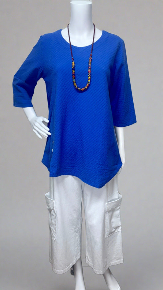 Cotton Seersucker 3/4 Sleeve Tunic by Focus Fashions