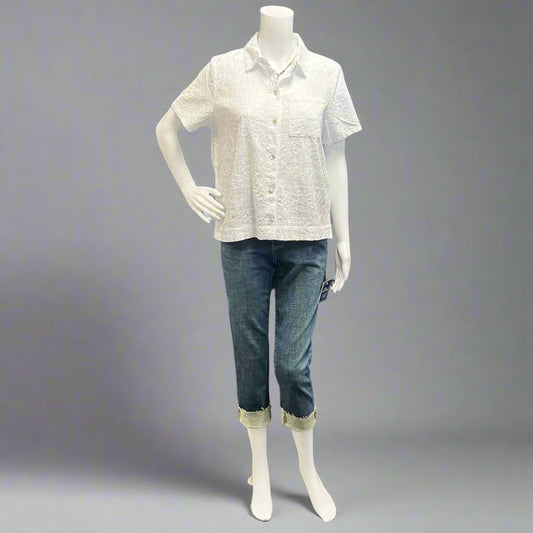 Mineral Wash Short Sleeve Embroidered Crop Shirt by Focus Fashion
